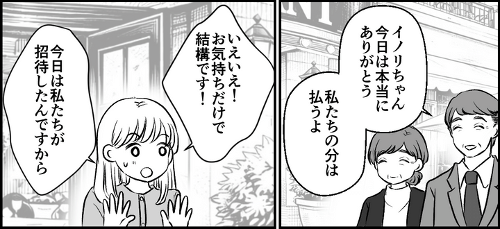 会計時に義両親は自分たちの分を払おうとしてくれましたが、「私が招待したかったので」と固辞しました。