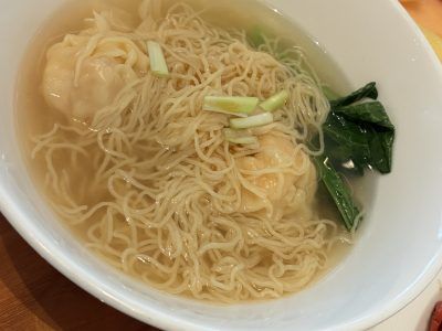 あまり美味しそうに撮れていなくてごめんなさいなのですが、ぷりっぷりのエビ雲吞に、つるっとのど越しのいい香港麺。軽く鼻に抜けるスープ、もうすべてが最高。