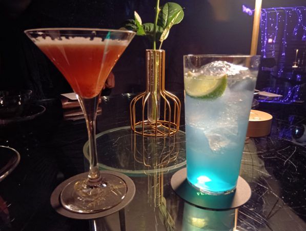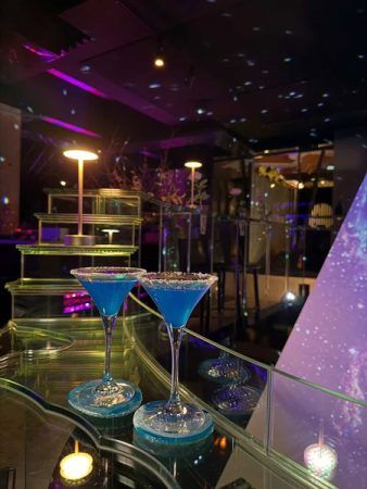 星を背景に、推し活での推し色のカクテルを撮影できます