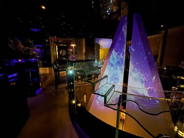 告知もせずにひっそりオープンしたため、半年間お客さんがゼロの状態が続いたそう。 そこで店内をDIYし、三角のオブジェを生かしたいと店内をプラネタリウムのイメージに。「走り始めてから考えていく状態ですね。試行錯誤していくうちに、ちょこちょこと来てくださるようになりました」と浜さん。