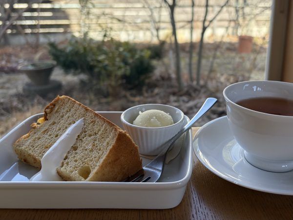 それぞれりんごのチーズケーキと、金柑のシフォンケーキを。季節ですね!アイスやシャーベットも付きます。そしてコーヒーと紅茶。