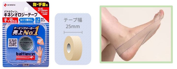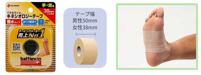 撥水機能とフィット感をプラスした使いやすい伸縮性粘着テープ。土踏まずをサポートすることで、足裏のアーチを保ち、疲れを軽減・予防します。テープを3本貼るだけなので簡単です。