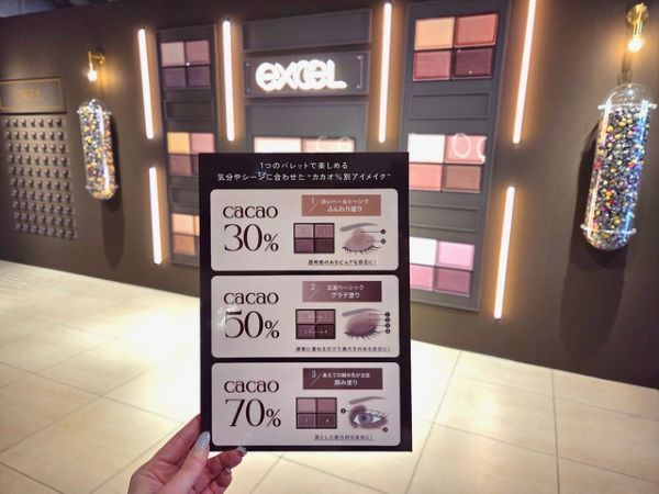 トレンド感はもちろん、さまざまなメイクをより自由に楽しめるように。さらに、ブラウンを操るエクセルならではのメイクとして、一つのパレットで気分やシーンに合わせて“カカオ%別アイメイク”も発表会で提案されました。