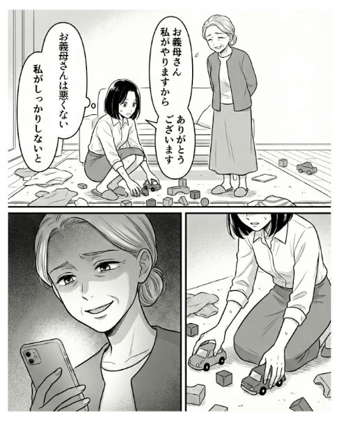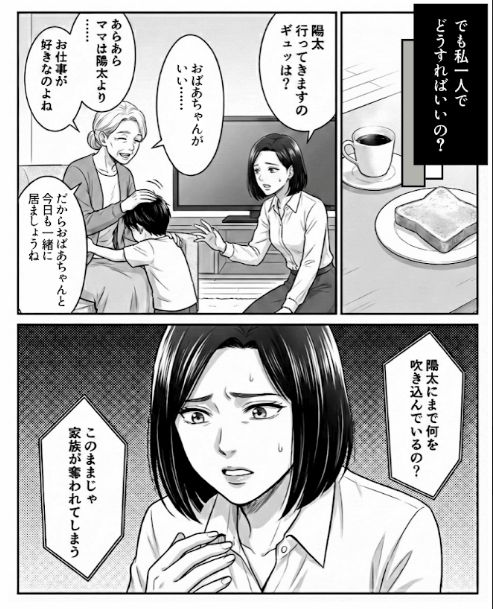 日常を蝕む悪意の正体は、やはり最も身近な存在である義母による、緻密な罠でした。 我が子にまで「ママは仕事が好き」と吹き込み、洗脳しようとするその姿は、もはや家族の情など微塵も感じられません。