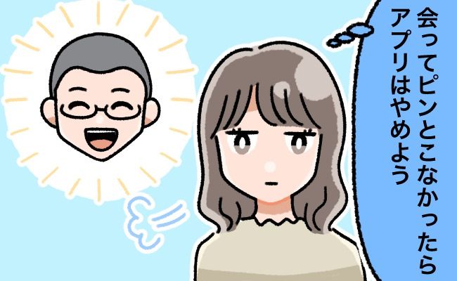 私は、マッチングアプリで婚活をしていました。やり取りをして、結果的に10人ほどの男性にあったのですが……特にこれといった決め手がなく、私はアプリにも飽きてきて「そろそろ辞めようかな…」と思っていました。