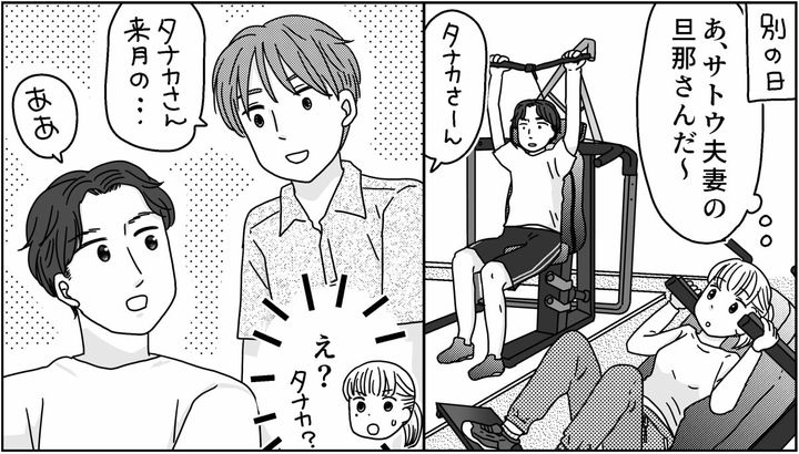 ある日、仲良しサトウ夫婦の旦那さんがトレーナーに「タナカさん」と呼ばれているのを聞き、名字が違うことに違和感を覚えた私。