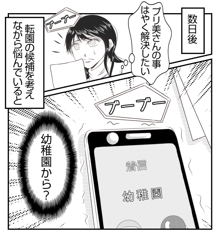名前を聞いてみるとプリ美の娘ではなかったが、花は念のため幼稚園の先生に話しておくことにした。