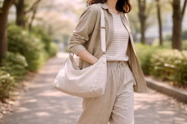 バッグを替えるだけで、同じ服でも春らしい空気が生まれます。大きく買い替えなくても、“持ち替え”感覚で軽いバッグを取り入れるだけで十分、更新感は出せます。