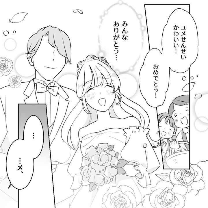 私はユメ、23歳。幼稚園の先生をしています。優しくてカッコいい男性と、クラスの子ども達に祝福される結婚式を挙げて、私は笑顔でみんなに「ありがとう」って・・・