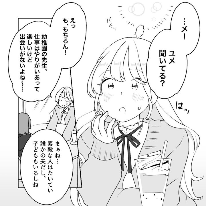 私の運命の王子様に早く会いたい。結婚式のイメージは完璧なのに、肝心な結婚相手はいつも妄想。みんなどこでどうやって彼氏に出会っているのかな。私の仕事だと、同僚の男性以外はみんな教え子のパパだもん。ため息をついていると、アキが「実は私、彼氏ができたの」と切り出しました。