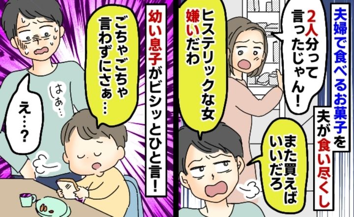 楽しみにしていたスイーツを食い尽くし!反省しない夫にイライラ…夫婦喧嘩を止めた息子のひと言とは