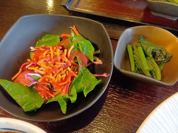 トマトドレッシングで和えたルッコラサラダに揚げ蕎麦がon。野菜なども自社栽培したものや、地元農家から仕入れたものが中心とのこと。とても瑞々しくて美味しく、同伴者の分まで食べちゃいました(笑)