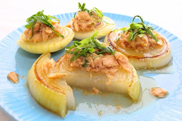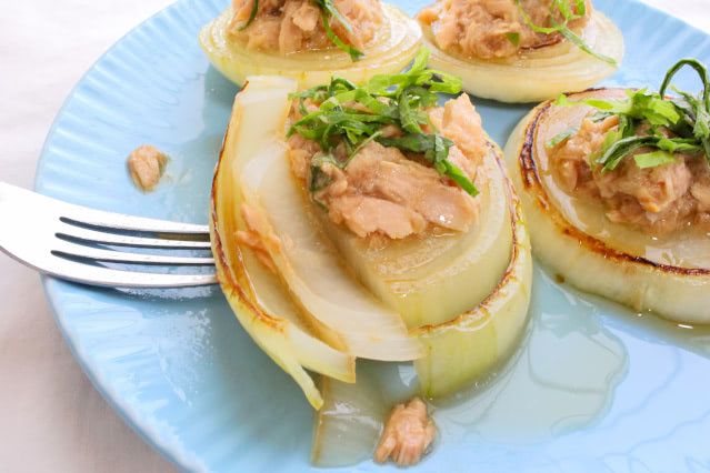 玉ねぎは細かく切って脇役になることが多いので、ステーキにすれば主役として玉ねぎのおいしさを楽しめますよ。ツナソースもしょうゆと酢を効かせることで、油っぽさが和らぎ、和風に。