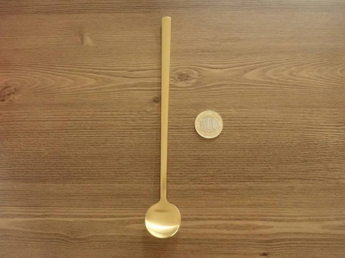 マドラーとスプーン、どちらの機能も持っていて便利なのが、DAISO(ダイソー)の「マドラースプーン(ゴールドカラー)」です。
