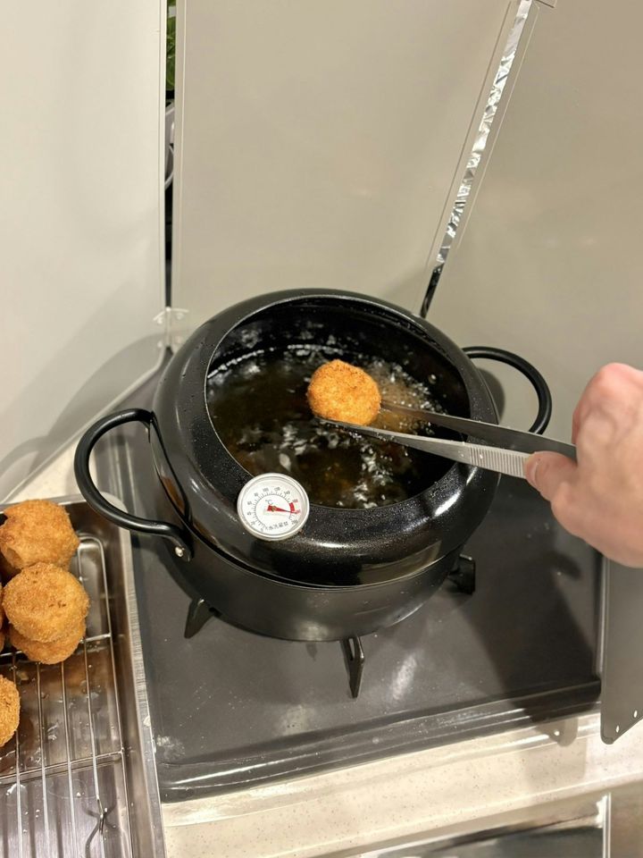 コツは【2度揚げ】。「色づくまで短時間で揚げ、バットで5分ほど放置してからもう一度揚げると、未加熱や半生を防ぎやすくなる」と麦ライスさん。サクッとした食感に仕上がるのもうれしいですね。たくさんの揚げ物があっても、皆が熱々のうちに食べられるのも◎。