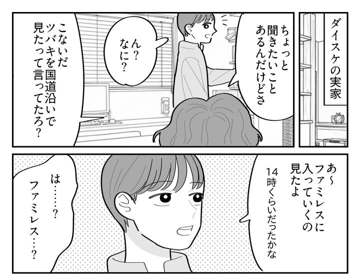 俺はダイスケ。ツバキが妊娠したため乗り気でない結婚をして、子どもが2人いる。金はかかる一方だし、先のことなんて考えたくない。逃げたくてたまらなかった俺は、ある日弟から「男と歩いているツバキを見た」と聞かされる。きっとその近くのラブホに入ったんだろう。俺は妻の不倫を理由に、何の責任も負うことなく離婚できると思った。しかしツバキは自分の非を認めない。俺が罵倒すると、義両親はツバキと子どもたちを家に連れて帰ったのだった。