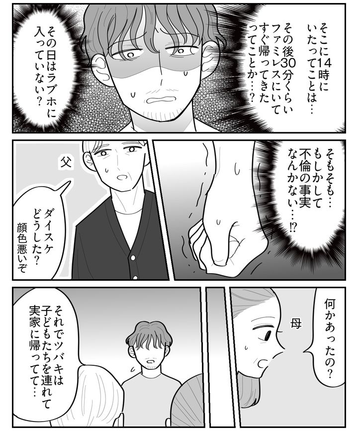 弟から詳しい話を聞いて、俺は自分の間違いに気付く。まさか、不倫の事実なんてもともとなかったのか……!? あれだけツバキや義母のことを罵倒した、俺の立場は一体……!? これまでの経緯を話すと、両親も青ざめていた。