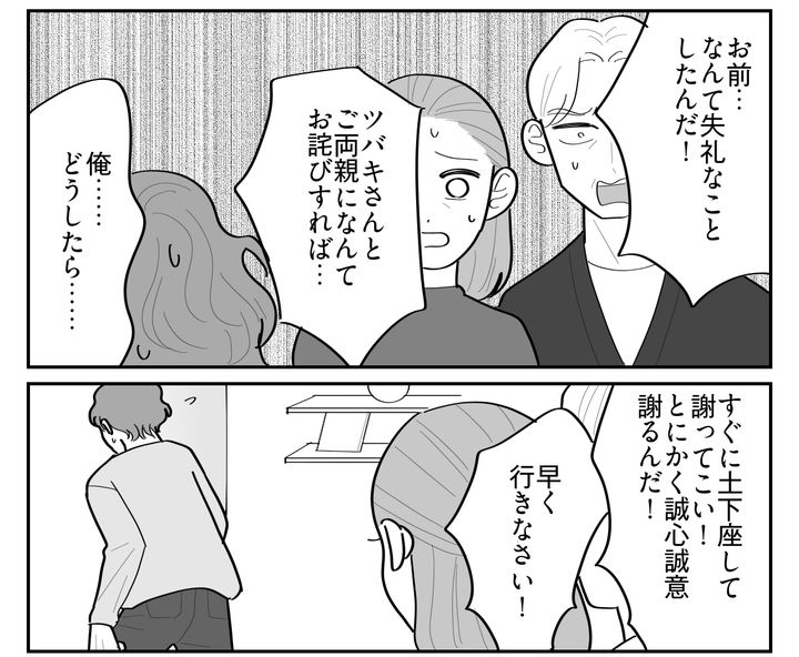 このままじゃ俺は妻の不倫をでっち上げて罵倒した最悪の男。離婚しても慰謝料をもらうどころかこっちが払うことになるだろう。ここまで本気で謝ったのは人生で初めてだった。しかしツバキからかけられた言葉は俺が期待したものではなかった。