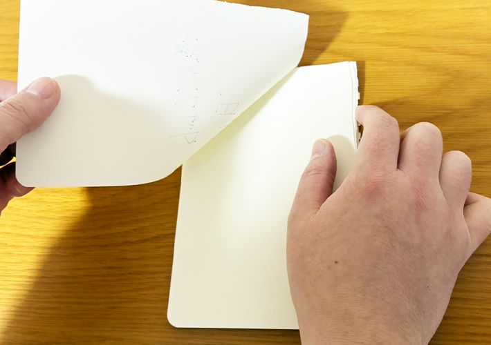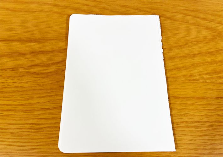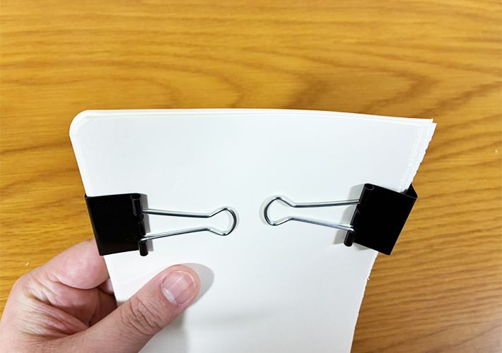 ここで端に凹凸があると、仕上がりに影響するため、机などを使いきれいに整えましょう。
