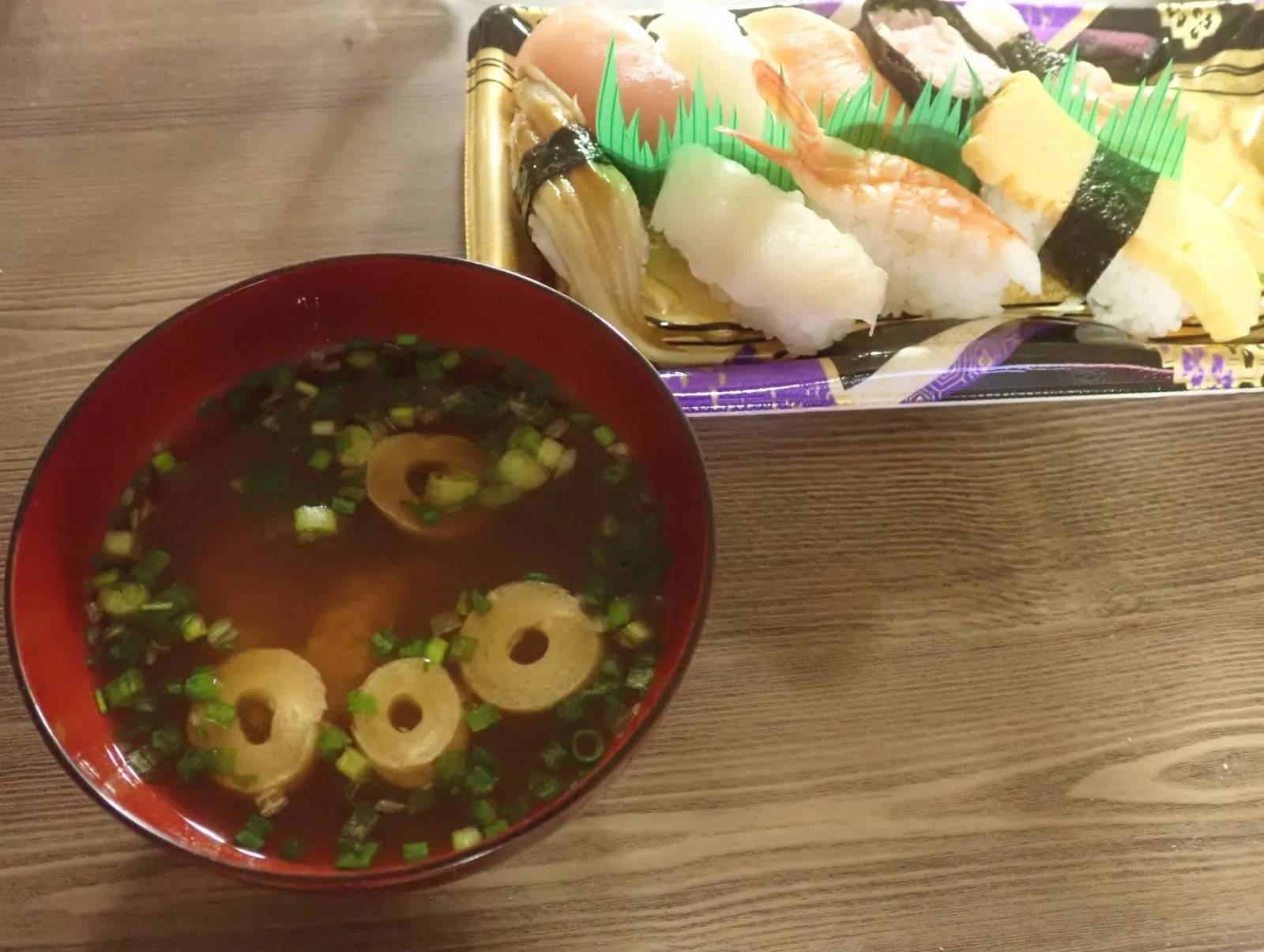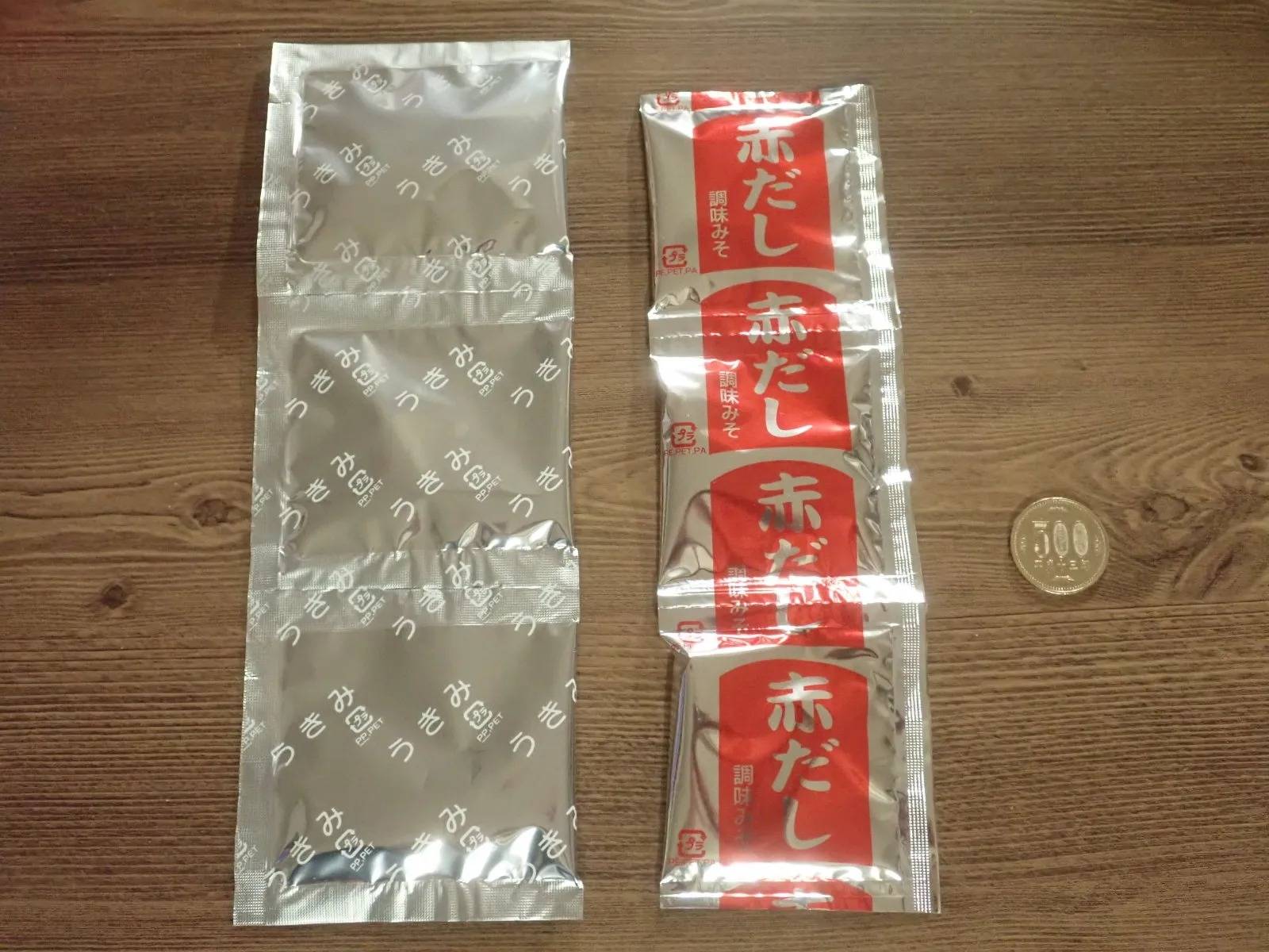 3食入りで、赤だしのお味噌汁です。