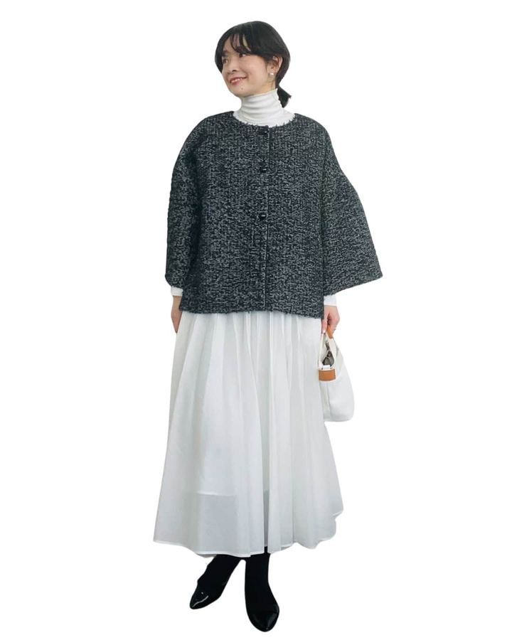 オケージョンにも、普段使いにもツイード素材で上品見え。学校行事やお仕事、きれいめシーンはもちろん、デニムやカーゴパンツと合わせればデイリーにも活躍。