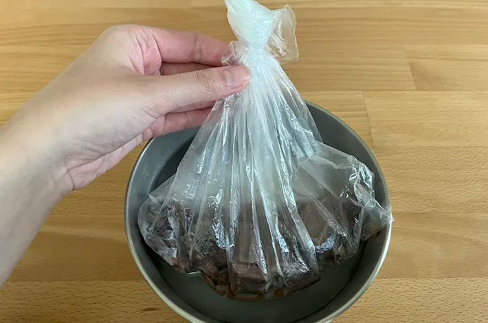1.アイラップの中でチョコレートを砕く