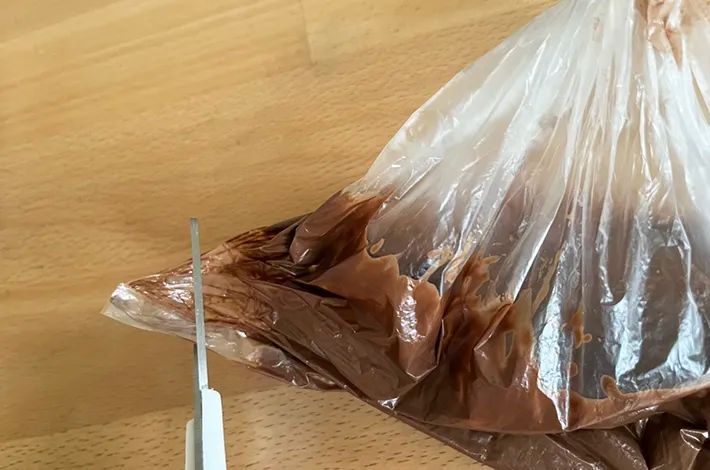 なお、筆者は絞り口を大きく切りすぎてしまい、チョコレートを注ぐのに苦労しました…。小さめの穴を開けるのがおすすめですよ。