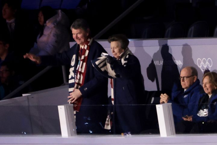 現地時間2月6日(金)に開催されたミラノ・コルティナ・オリンピックの開会式。イギリスのアン王女が夫のサー・ティモシー・ローレンスと共に出席、選手たちに声援を送った。