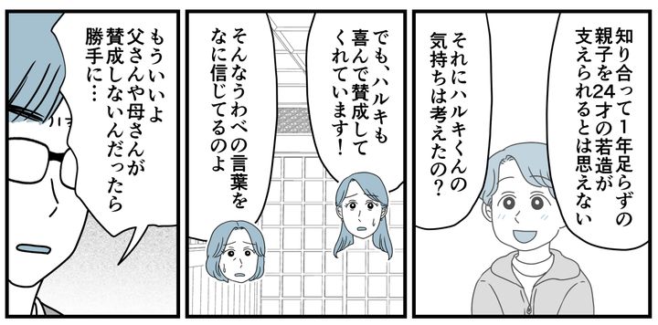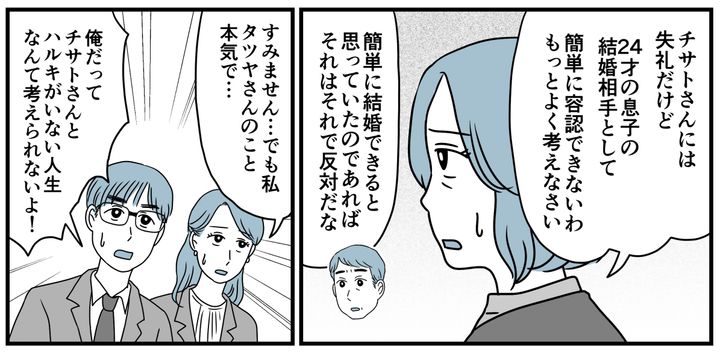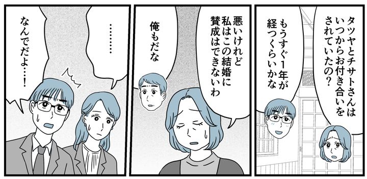 タツヤは真面目な子です。チサトさんとハルキくんを実家に連れてくるくらいだから、本気で結婚を考えているのでしょう。しかし私と夫は、いたって冷静に気持ちを告げました。「なんでだよ……!」「なんでって。当たり前でしょ」