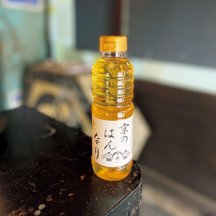 明治17(1884)年に創業し、今では市内に5軒となった醤油蔵元の一軒。木桶で熟成する二度熟成醤油から、琥珀色が目を引く京のはんなり醤油などまで10種以上の醤油が揃う。京のはんなり醤油は、その名のイメージどおり淡い色が特徴。とはいえ口にすれば旨味が強く、ギャップに驚く。色をつけたくない料理に使うのはもちろん、隠し味に使っても料理をじゃましない万能ぶり。360㎖¥550。