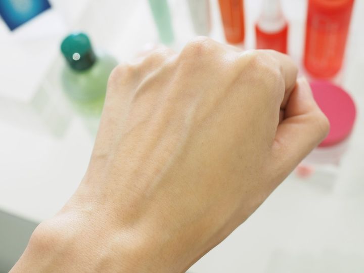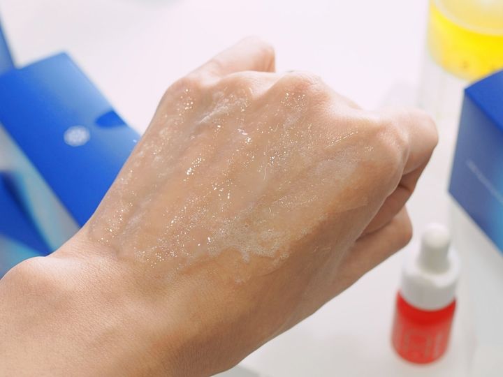 筆者は手の甲で体験したのですが、ジェルを伸ばしてしばらくすると写真のようにチラチラと泡が発生。パチパチとわずかに音はしますが、刺激は感じず。時間を追うごとにモコモコに泡立っていきました。