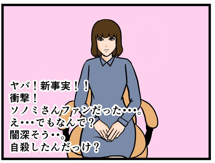 まずは「自殺したユアチューバーのソノミの妹である」と明かした。