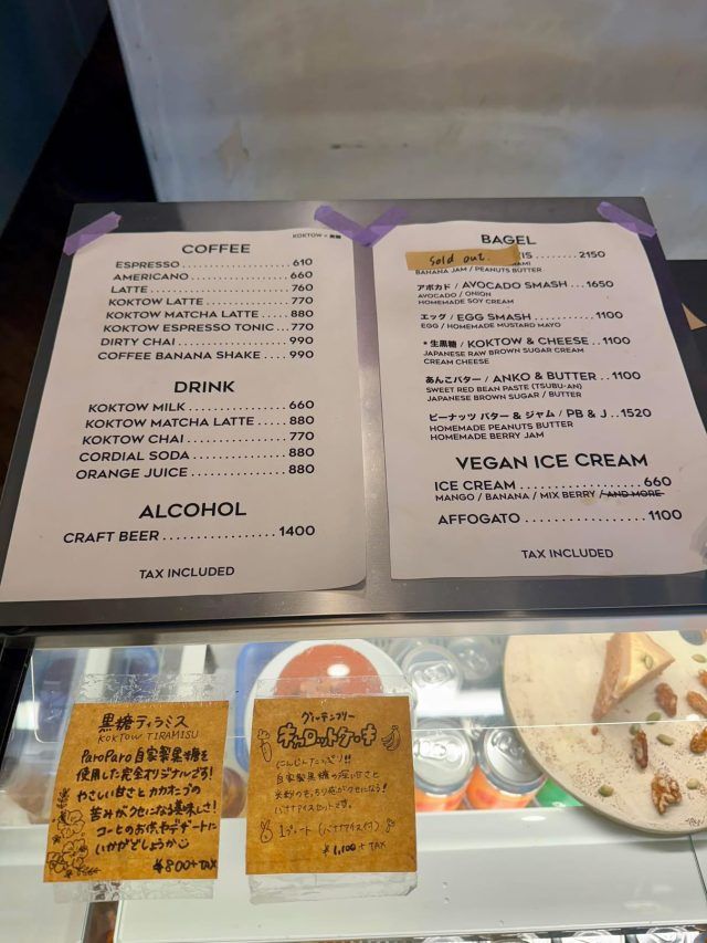 ベーグルは6種類。 アボカドエッグといったお食事系や、あんこバター、ピーナッツバター&ジャムもあります。 残念ながら、「Elvis」という看板メニューはSold Outでした。 「エルビス・プレスリーのおふくろの味」をアレンジした、パストラミビーフ×ピーナツバター×バナナジャムのベーグルだそうです。