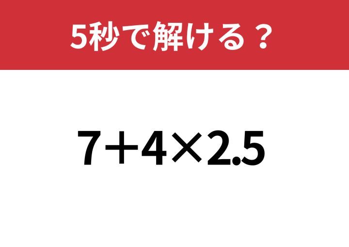 多くの人がミスする?「7+4×2.5」5秒で解ける?