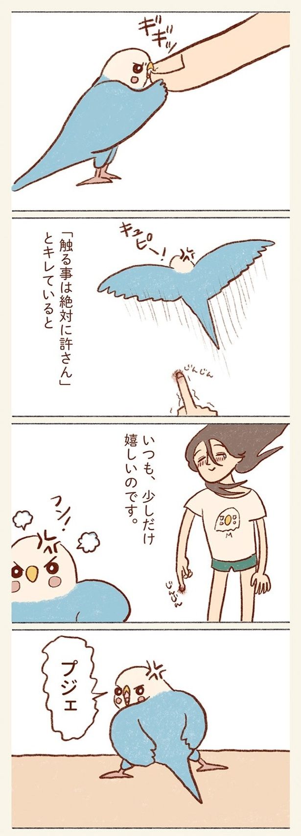3. 食事中のインコを触りたい。指で触ると怒るけど、唇なら?/プジェ日記!⑯