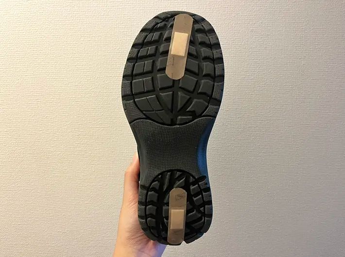 まず感じたのは、坂道での滑りにくさ。特に、つま先側の絆創膏が滑り止めとなってくれているようでした。