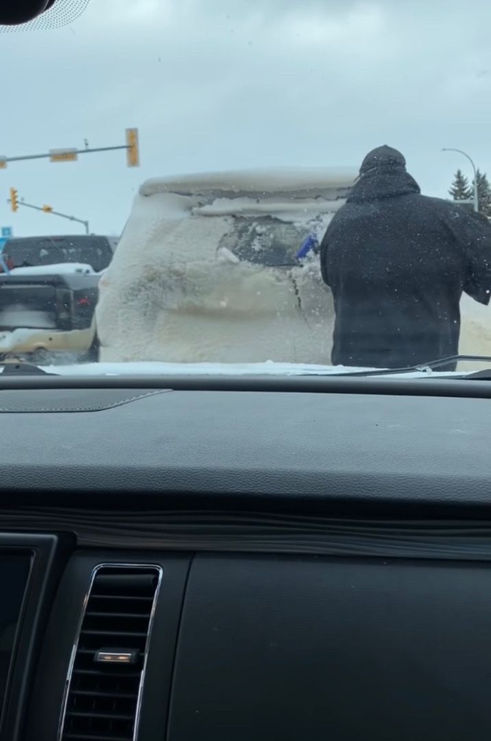 それにウンザリした後続車のドライバーである男性が、たまらず雪を落としてあげることにしたようです。 この男性は「頼むからこれでもう迷惑運転はやめてくれ!」という気持ちだったのかもしれませんね。