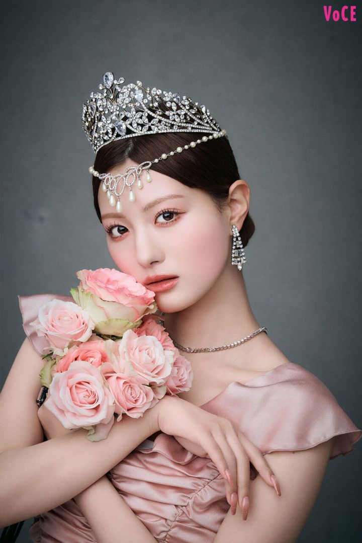 ワンピース¥23100/クレイミー ティアラ¥48300、頭のネックレス¥25300、首のネックレス¥29160、イヤリング¥22000、リング¥7290/アビステ (メイク中カット)ブラウス¥10800/Olu.イヤリング¥32400、リング¥19800/アビステ