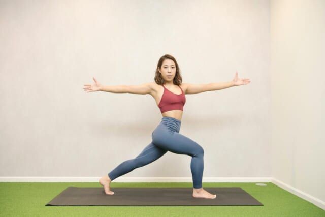 反対側も同様に行います。なお、期待する効果をきちんと得るためには「上半身をねじる時、しっかりお腹からねじっていくこと」「足をしっかりと床に踏み込んでバランスを取ること」の2つがポイント。体の軸が左右どちらかに偏ってしまったり、足がぐらついたり、お腹の力が抜けてしまったりすることがないように、きちんと腕を水平にしたままバランスを取ることを意識しましょう。体を大きく使い、軸から整える動きは停滞した体印象を立て直すきっかけになるので、呼吸と一緒に体を動かす感覚を取り戻してみてください。<ヨガ監修:Minami(インストラクター歴4年)>