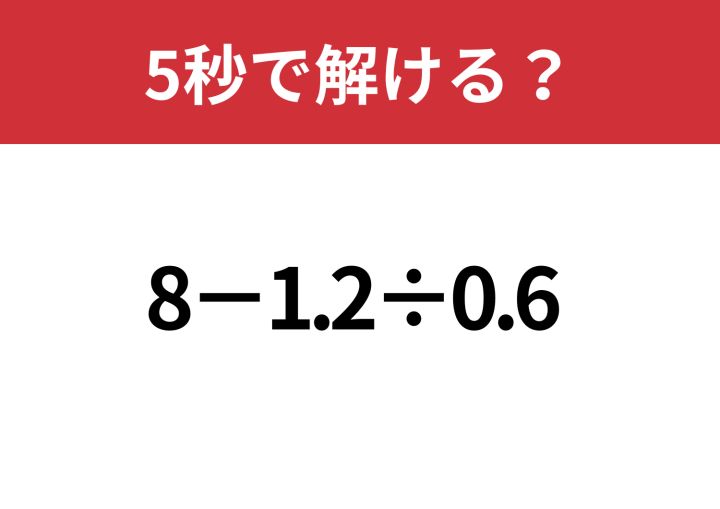 大人なら見抜けますよね?「8−1.2÷0.6」5秒で解ける?