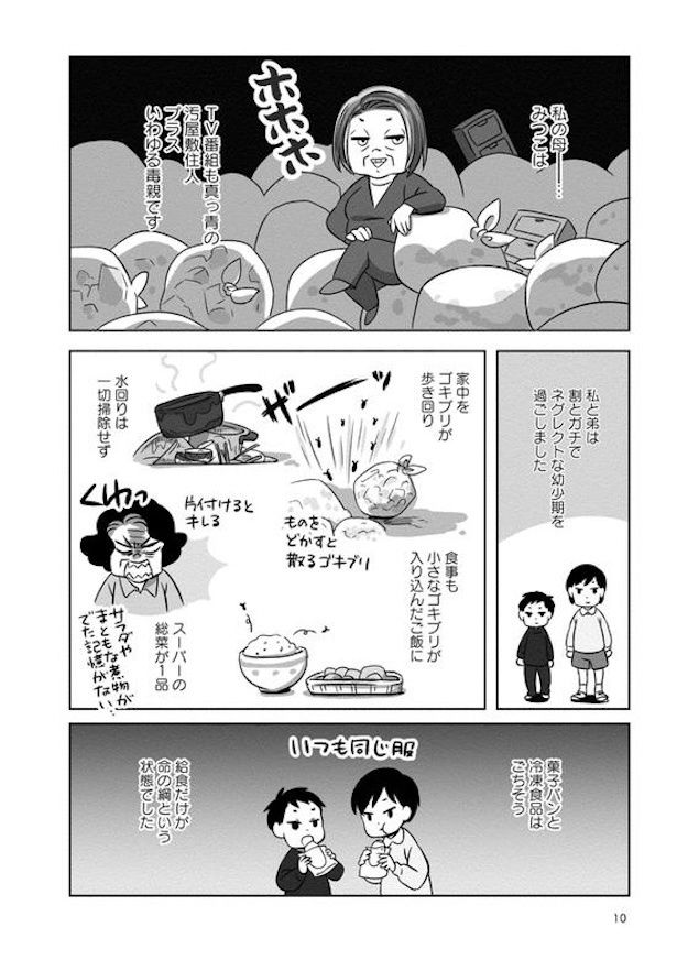 汚屋敷住人の母、ネグレクトを受けた姉弟。ゴキブリのフンが散乱する家で育ったトラウマ/母を片づけたい①