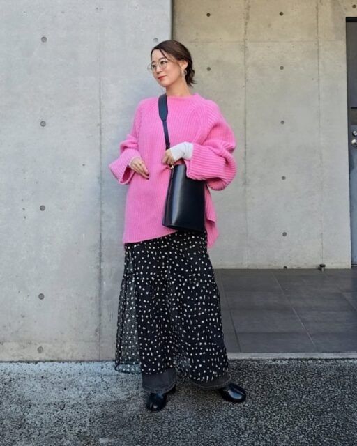 まだ肌寒さを感じることも多い春先。そんな気温の日は鉄板のショートブーツをチョイスしましょう。足元に程よく重さが出るため、甘いムードのロングスカートが引き締まる上に、オーバーサイズのニットとも好相性。あらゆるアイテムを受け止める懐の深さはショートブーツならではです。