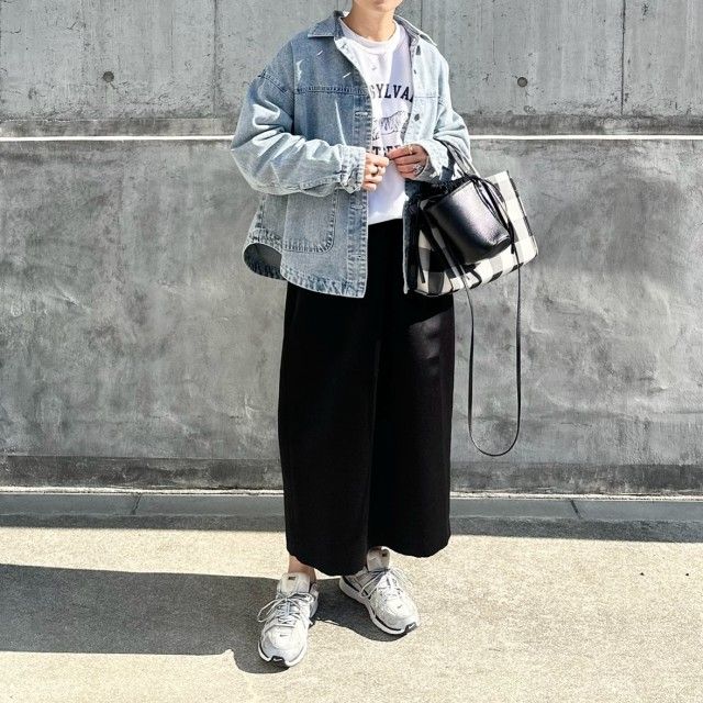 白スニーカーはロングスカートコーデを大人カジュアルに導く優秀アイテム。春らしい軽やかさに加え、程よくスポーティなニュアンスをプラスできるのが魅力です。合わせるだけで季節感と今っぽさが高まり、抜けのあるスタイリングが完成。