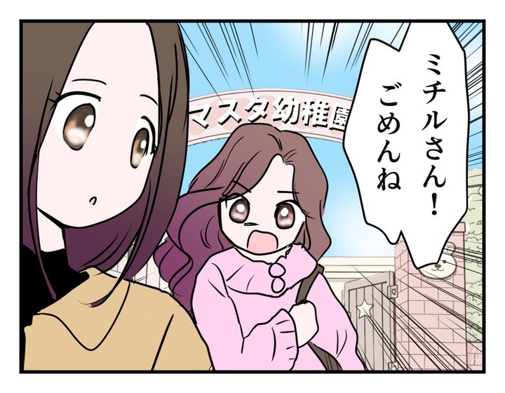 フライドポテトの件でシオンさんと距離を置いていたミチルさん。でもその一件を除けば気の合うママ友だったので、「やっぱりずっと会えないと寂しい……」と思ってくれていたようです。そして今回、あらためてシオンさんが丁寧な声かけをしたことで、ミチルさんも「やっぱりまた一緒に遊びたい」と素直な気持ちを伝えてくれました。そんなふうに思ってくれていたなんて……と、シオンさんは嬉しくて思わず笑顔があふれます。