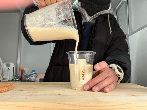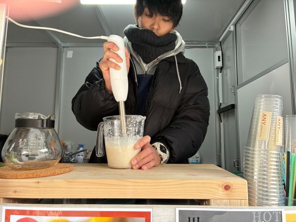 共同経営者の吉本さんが調理を担当。 待つこと暫し、熱々のホットレモネードが手渡されました。