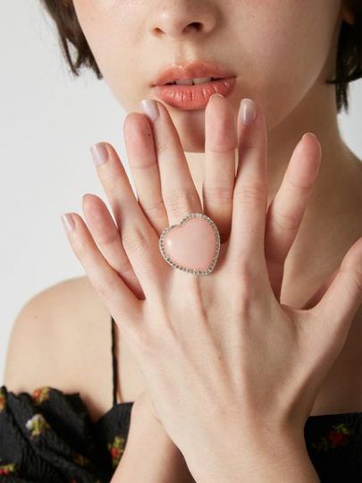膨らみのあるボリュームハートが可愛らしい、存在感抜群のリング。ハート部分は天然石を使用しており、フチには極小ストーンをトッピング。