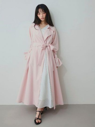 ドレスライクなトレンチコートは、UVカット・接触冷感・撥水とハイスペックで機能面も上々。ウエストマークをしてワンピースのように着こなしたり、前を開けてガウンのようにラフに羽織ってもサマになります。