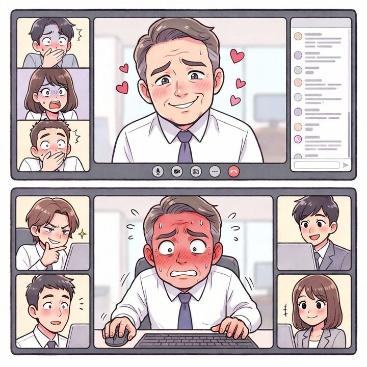 会議のチャット欄は「え?」「部長?」と一瞬で大混乱。