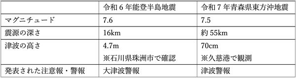 最近の事例として、令和6年能登半島地震と令和7年12月8日に発生した青森県東方沖地震について津波の観点から比較してみます。