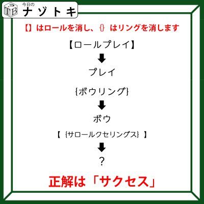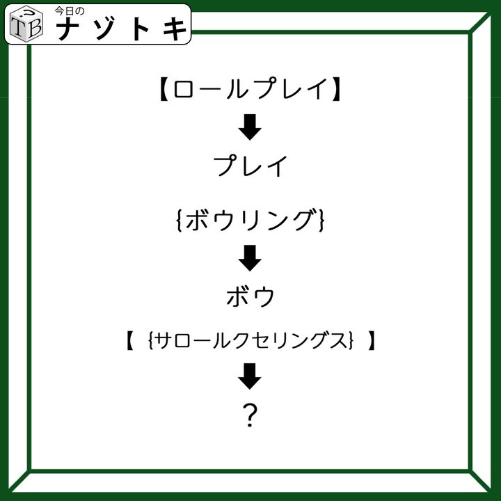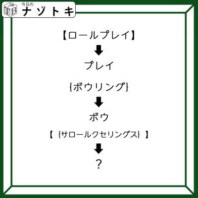 二つのカッコの意味が分かったので問題を見ていきましょう。問題は【】と{}の二つのかっこが出てきていますから問題文である「サロールクセリングス」から「ロール」と「リング」を消してみましょう。すると何が残るでしょうか。